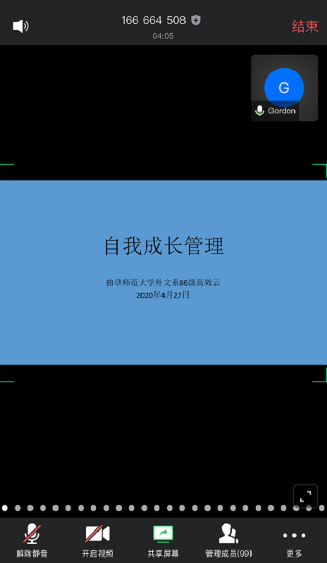 为了进一步推进外国语学院2020届毕业生就业服务相关工作,为2020届毕业生提供精准服务,助力毕业生就业。4月27日下午,外国语学院邀请曲阜师范大学外文系86级杰出校友高效云老师举行报告会。本次会议采用“腾讯会议”的线上交流形式,由张立昌老师主持。外国语学院党委副书记、2016级辅导员王作茂老师参加此次报告会