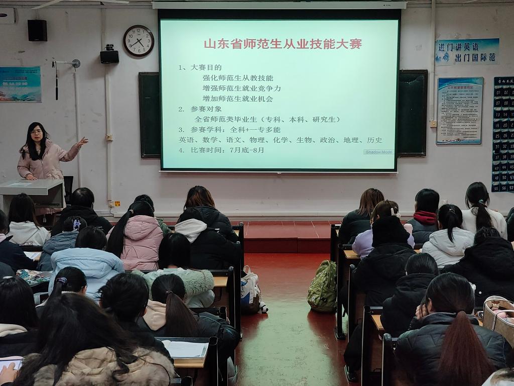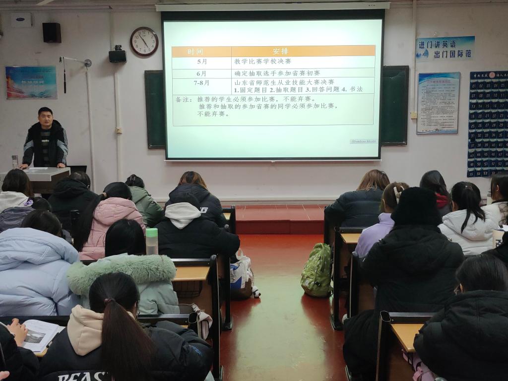 会议伊始,王作茂副书记就同学们在实习期间的角色转换,各种安全问题,实习态度、作风问题以及处理好实习和个人学习问题等发表讲话,他希望同学们牢记校纪校规,充分展现曲园学子应有的风采。随后,英语系主任徐欣明确了实习期间的工作安排,并向同学们详细介绍了山东省从师技能大赛的流程等内容。在会议过程中,副院长邢加新围绕实习的相关政策变更展开全面讲解。与此同时,他建议同学们利用假期重点做好课标、教材、优质课学习等实习准备工作。最后,辅导员王仁杰作总结讲话,强调同学们应保持积极的心态和高度的责任感,做好教育实习工作。