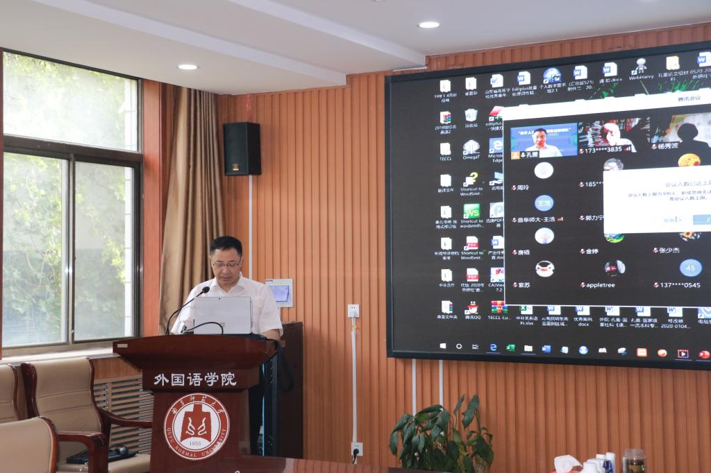 6月6日,由我院与曲阜师范大学数字人文研究中心联合主办的“数字人文与外语研究创新团队”年度论坛在线上举行,党委常委、副校长夏云杰出席开幕式并致辞。论坛由学院院长秦洪武教授主持。国内上百所高校和研究机构的300名专家学者参加本次论坛。