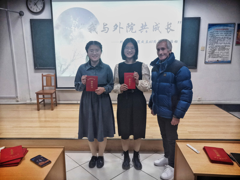 的祝福。其中刘仪霞和郑琪分享了自己在老师的指导下由大一迷茫到大四成熟的成长经历,荣获本次比赛的一等奖。最后,副教授王莉、外教Roger Louis对选手们的精彩表现进行点评,强调了自信的重要性,并勉励同学们要继续努力,在未来的学业中取得更大进步。