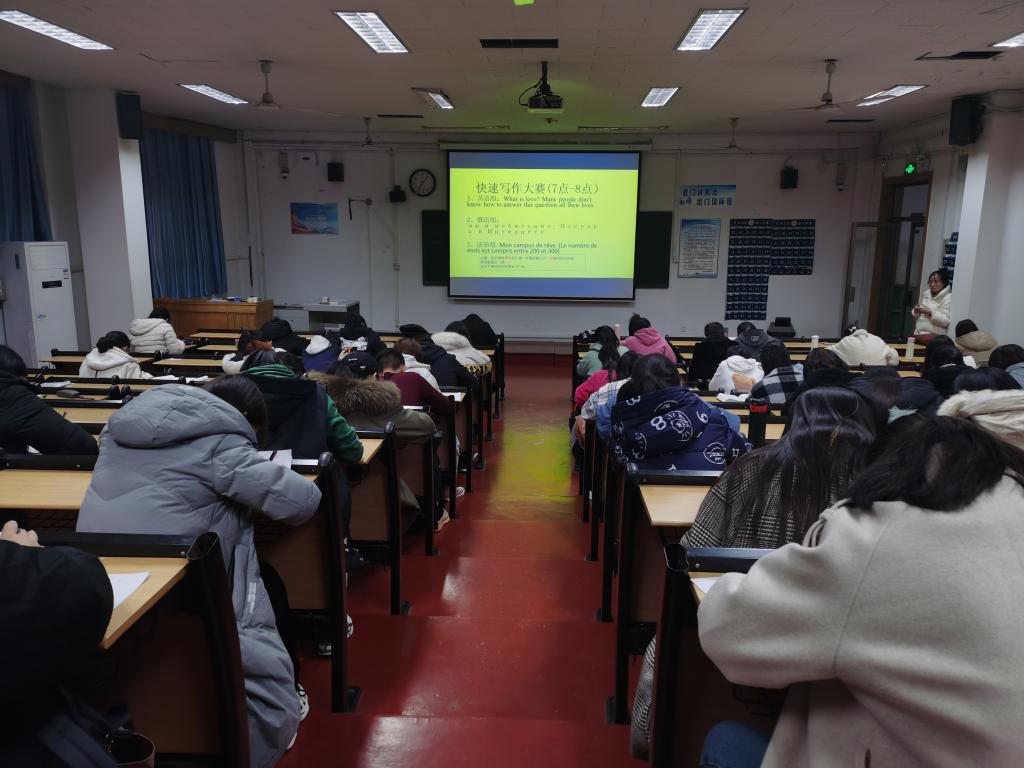 于外语楼201室成功举办快速写作大赛。选手作品由教授韩英旭,谢璇和外教Roger Louis进行评审。
