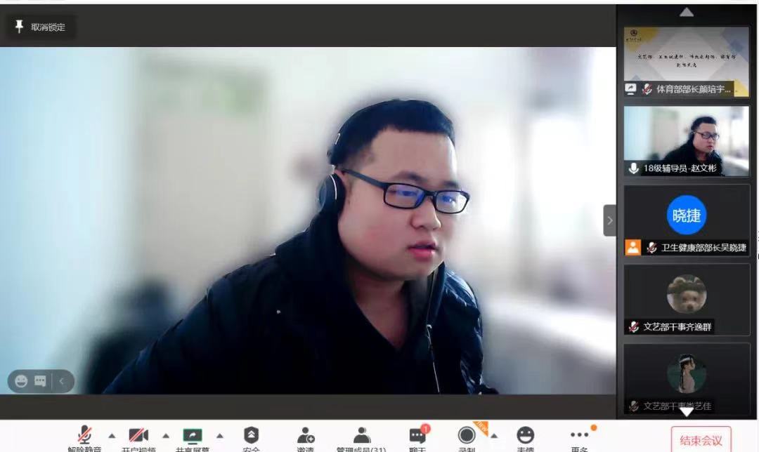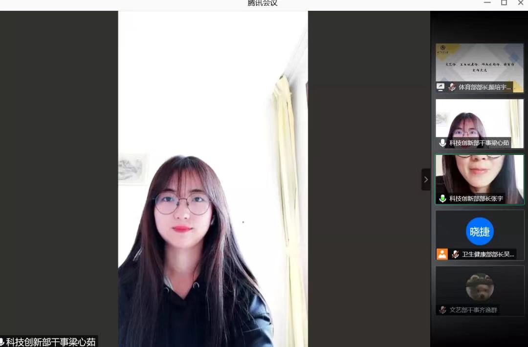 于线上举行团委学生会副部竞选活动。本次竞选面试由辅导员冀玉珍、张晓、王伟、赵文彬,团委学生会2020届各部门部长、2021届主席团及各部长分小组担任评委,各部门干事积极参与。