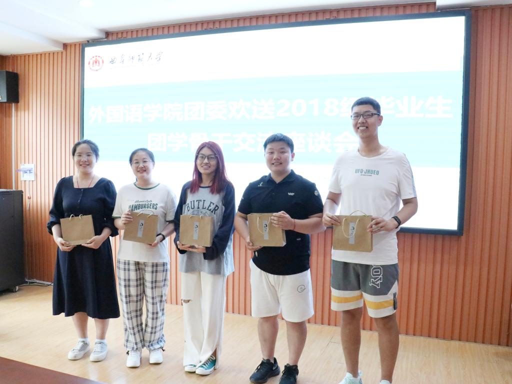 会上,学院党委副书记王作茂发表讲话。他表达了对毕业生团学骨干未来的期许和展望,同时希望毕业生们能够保持一心向党、砥砺奋进,时刻按照党员标准严格要求自己,永葆党员先进性和纯洁性。随后,2021届学生会代表马闻谦以及2022届团委学生会主席王孜淳分享了自己在2018级毕业生的帮助和指引下收获良多,表达了对他们的感激之情并送上了真挚的祝福。2020届团委学生会副主席刘华回忆自身的成长过程,讲述了大学四年内经历的矛盾、迷茫与成长,分享了自己的学习经历和工作经验,感谢学院老师们对自己的栽培。最后,为表达对毕业生们的真挚祝福,全体老师为他们赠送了毕业礼物和寄语。