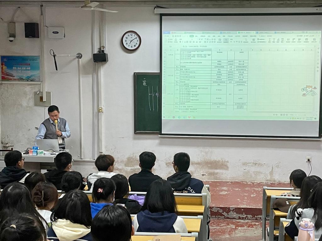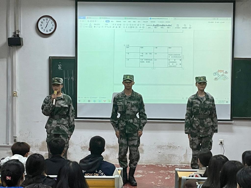 于系楼101召开教官与新生见面会。本次会议由2022级辅导员赵文彬主持,辅导员王婧娴、各军训教官到场,2022级全体新加。