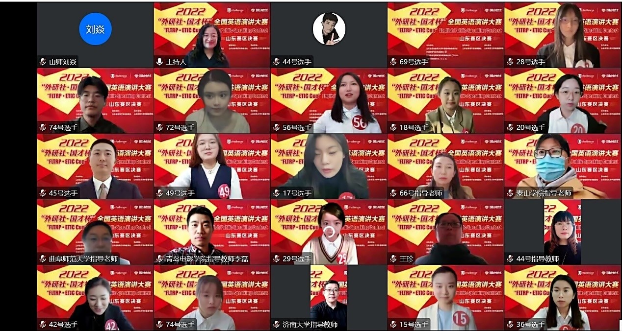 2022“外研社·国才杯”全国英语阅读大赛、演讲大赛山东赛区决赛分别于10月29日和11月7日圆满落幕。bet365 2020级英语专业学生翟欣然在刘萍老师的指导下获得演讲大赛山东省一等奖,在满虎老师的指导下获得阅读大赛山东省二等奖。