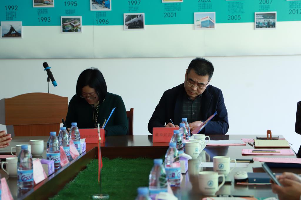 党委书记费沂涛,签订研究生实习基地协议、本科生实习基地协议和大学生社会实践基地协议并授牌,开启了合作共赢、高效发展的新篇章。仪式最后,与会人员合影留念并一同参观海信家电产业园,本次签约授牌仪式圆满结束。
