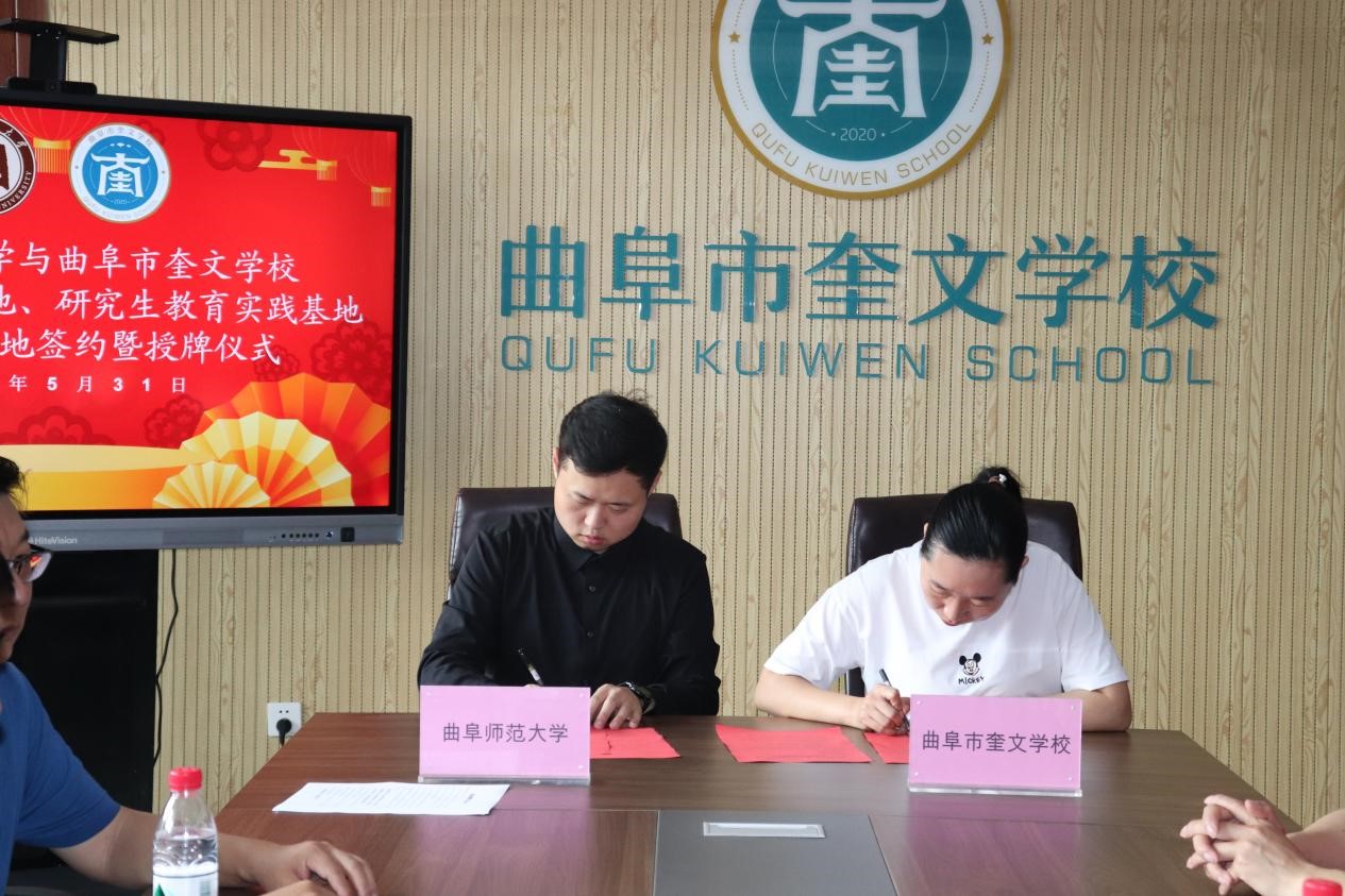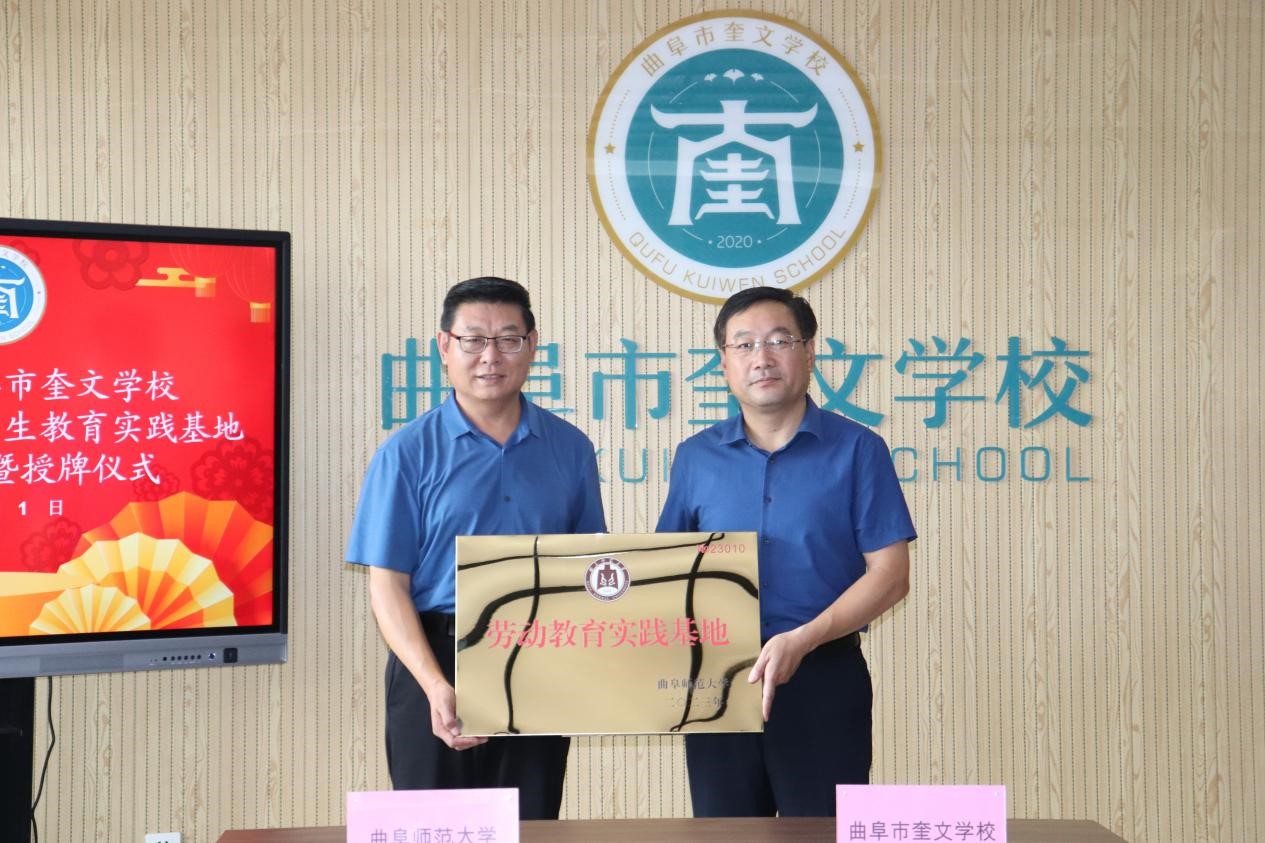 紧接着,在与会人员的见证下,bet365 辅导员赵文彬与奎文学校教务主任孔爽爽共同签署“劳动教育实践基地协议书”,bet365 党委副书记王作茂给曲阜市奎文学校进行授牌,揭开了两校合作的新篇章。