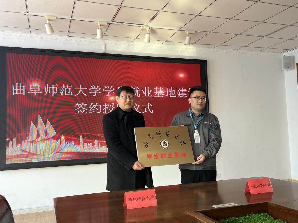 党委书记费沂涛、院长秦洪武、副书记王作茂、副院长王洪明、副院长邢加新、教研室主任田守新一同进行访企拓岗行动,与平度扬帆职业学校、青岛国赫通供应链有限公司、山东至简教育科技有限公司分别共建大学生就业基地,成功完成了就业基地建设签约授牌仪式。