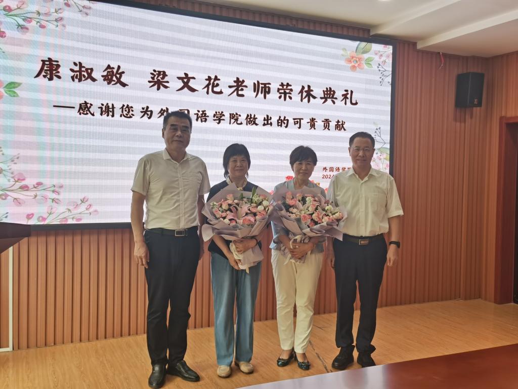 7月12日下午,bet365 在学院206会议室隆重举行了康淑敏教授和梁文花教授的荣休典礼。外院全体教职工齐聚一堂,共同见证了这一荣耀时刻。
