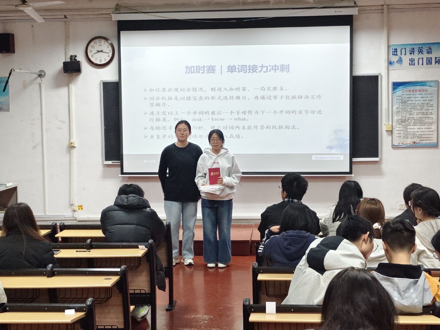 于系楼201教室举办“妙语拼锋,词定乾坤”单词PK大赛。