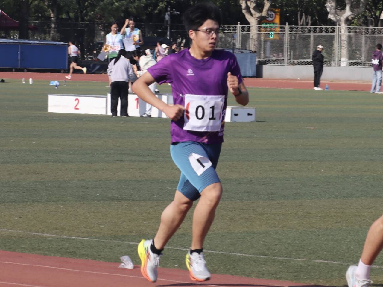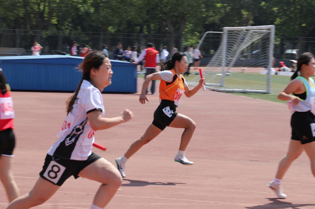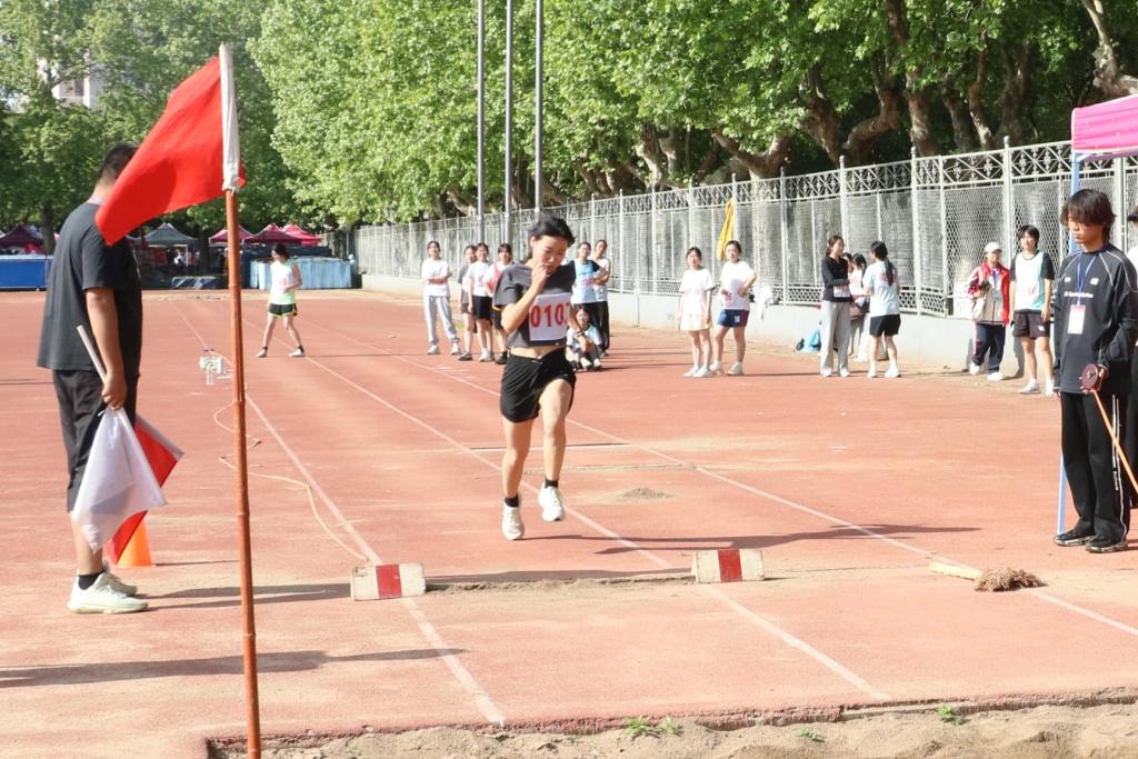 4月23日上午,各学院方阵伴随着《运动员进行曲》依次入场。开幕式结束后,赛场上掀起了比拼热潮,短跑、接力跑、跳远等项目有序展开。在4月23日的赛事中,运动员王雪丽在女子400米斩获第一名;运动员杜惠心在女子跳高和女子跳远的比赛中均取得了第三名的优异成绩。