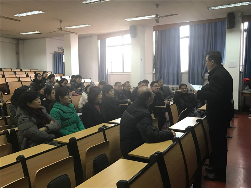 全体教职工党员出席会议,会议由党委副书记曲凤东主持。