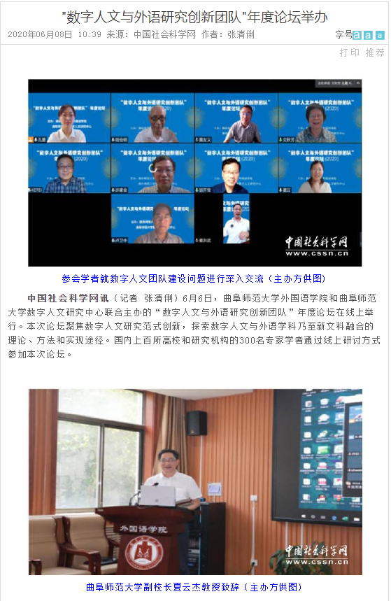 中国社会科学网:"数字人文与外语研究创新团队"年度论坛举办