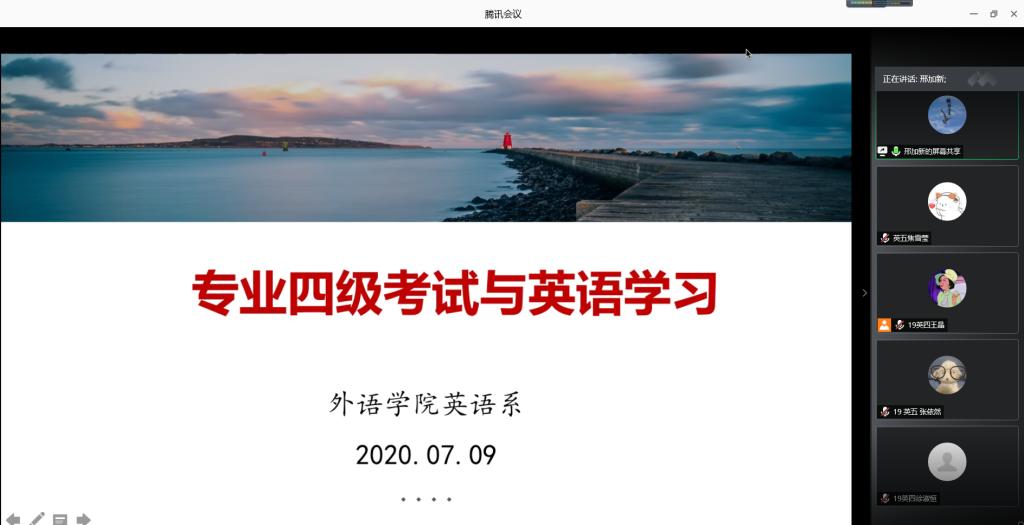 夏季小学期已至,为使同学们提前了解英语专业四级考试的相关事宜,bet365 于7月9日上午通过腾讯会议进行英语专业四级考试专题讲座本次讲座由邢加新老师主讲,刘萍老师主持2019级英语专业全体同学参加了此次讲座。