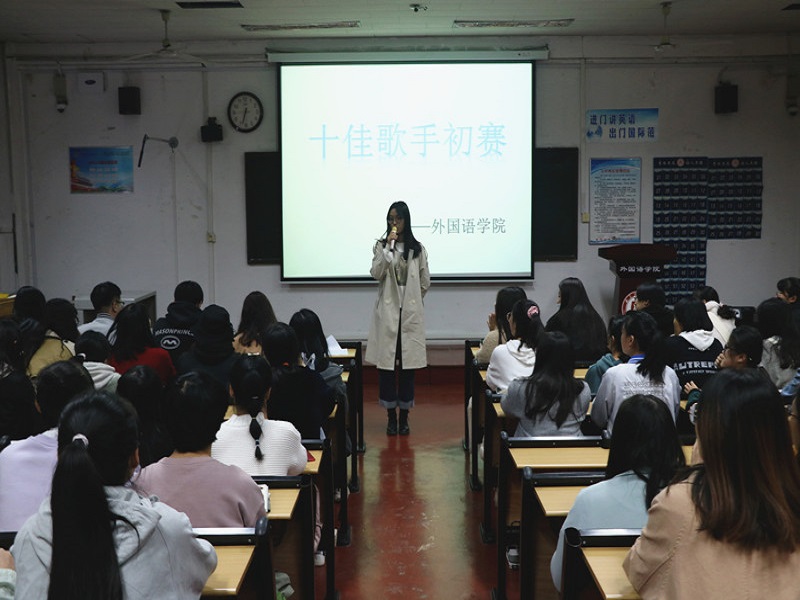 本次比赛共分为自我介绍和自选曲目清唱两个环节,选手们充分准备、巧妙设计,为我们带来了一场别具特色的音乐表演。选手们学以致用,将选唱曲目与自身特色、外语学习相结合,在动人的曲调中展现出外院学子的青春魅力。比赛在温柔动人的《陪你度过漫长岁月》中拉开了帷幕,随后2019级英语四班王开元、郭怡雯用中、英、日三种语言演绎的经典歌曲《后来》韵味十足,赢得了观众的阵阵喝彩。2020级英语二班刘金路凭借其扎实唱功改编并演唱的《小幸运》将现场的气氛推向高潮。最后,评委根据选手的综合表现进行评选。经过本次初赛的激烈角逐,共有5组选手成功晋级。