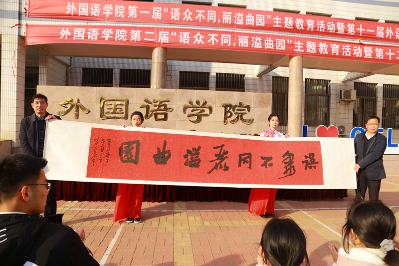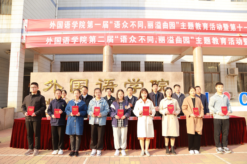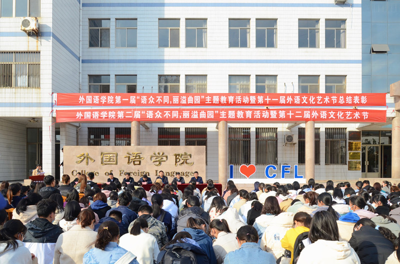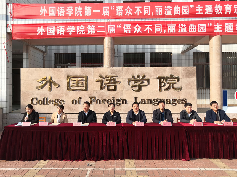 第一届“语众不同,丽溢曲园”主题教育暨第十一届外语文化艺术节总结表彰大会和第二届“语众不同,丽溢曲园”主题教育活动暨第十二届外语文化艺术节启动仪式在系楼前隆重举行。