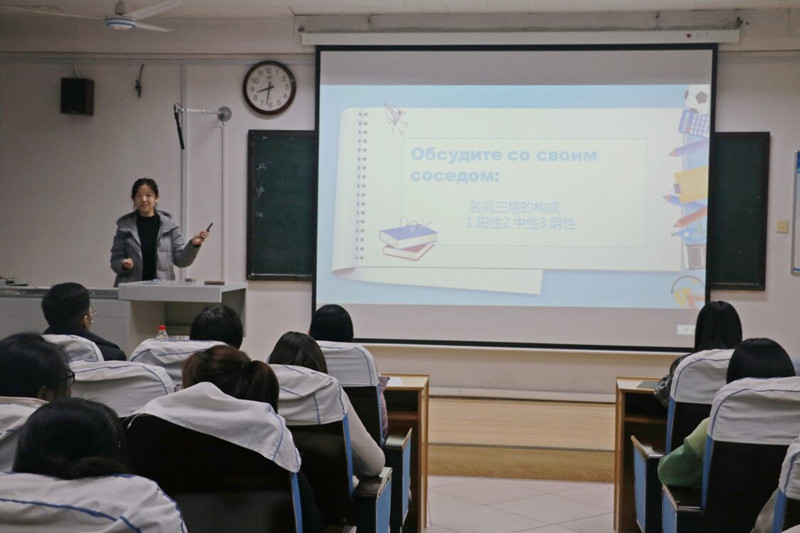 本次比赛分为专业组与非专业组,选手用外语讲述小、初、高中的课程内容。选手课堂设计新颖,将板书与PPT演示结合,通过小组讨论、师生互动等方式丰富课堂内容,活跃课堂气氛,达到了寓教于乐的教学目的。其中,专业组选手刘华将英语教学与急救知识巧妙结合,展现出扎实的专业教学水平,从专业组选手中脱颖而出。非专业组选手张文淇、胡文霞分别用俄语和法语以清晰的逻辑进行授课,环环相扣,引人入胜。在激烈角逐后,专业组刘华、吴丹等五位选手以及非专业组选手李雪妍、张靖宇成功晋级。最后,王莉老师分别从教学方法、板书内容、指令表示、课堂用语等方面对选手表现进行了细致的点评与指导。