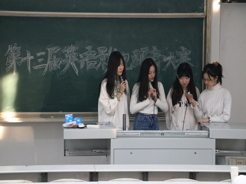 伴随着选手和观众的热烈掌声,比赛正式拉开帷幕。本次比赛分为专业组和非专业组,20组专业组选手和19组非专业组选手分别同时进行比赛,选手进行大于3分钟小于等于5分钟的配音,表演内容健康、积极向上的优秀英语电影、动画片段。比赛精彩纷呈,展现了学生们精心的准备和参赛的热情。其中专业组刘韦妙组发音准确流畅,表演声情并茂,在比赛中表现优异,给现场的评委和观众都留下了深刻的印象。最后,评委们就发音标准、强读弱读、感情表达等方面给予精彩的点评。经过激烈的角逐,专业组刘韦妙组等和非专业组杜若飞组等成功晋级,进入决赛。