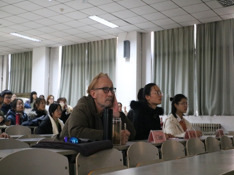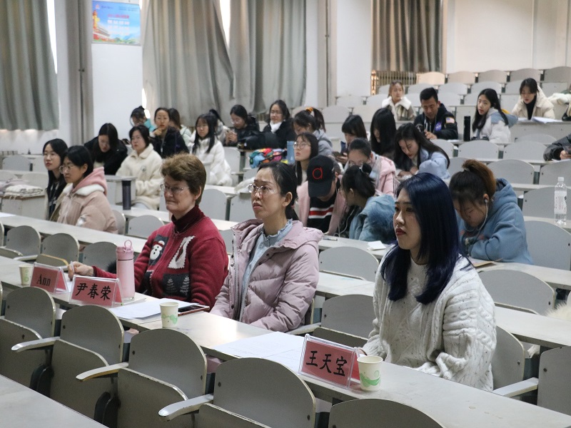 尹春荣、外教Ann、外教Clint、王伟老师及辅导员助理郑琪、王天宝出席担任评委。
