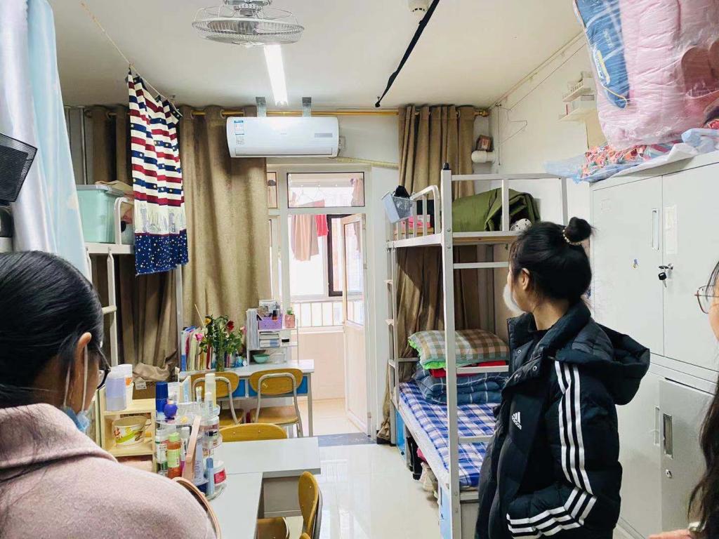 两栋楼的所有研究生宿舍进行检查。在评选过程中,老师和干事们认真负责,秉承公平公正客观的原则,从地面、桌面、床铺、阳台等几方面分别打分并汇总。老师还与宿舍的同学们积极交流,了解大家的思想、学习和生活情况,对优秀宿舍进行表扬和鼓励,对有待改进的宿舍提出了意见和建议。最后,检查发现,宿舍整体卫生情况有较大进步,更加干净整洁,宿舍氛围也十分温馨舒适。