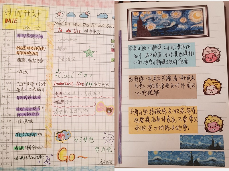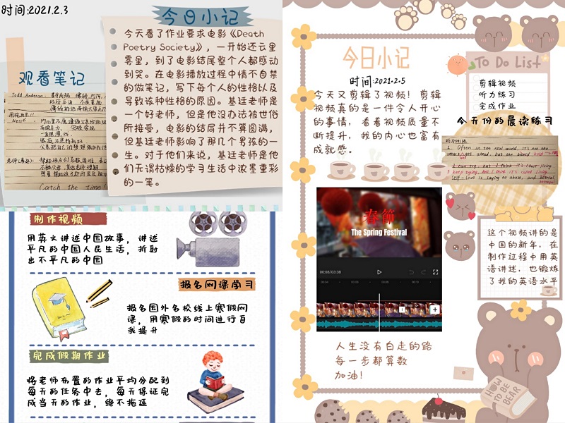 学子饱满的生活热情和积极的学习态度。其中,2020级王孜淳的电子手账尤为精美,每一页手账都图文并茂,不仅有自己的学习记录,还有日常的生活反思,给评委们留下了深刻的印象。经过三位评委的仔细评选,王孜淳和杜颖琪两位选手脱颖而出,同时她们的作品也将代表bet365