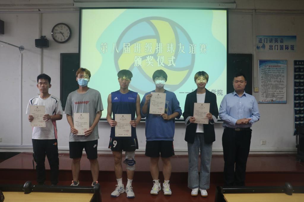 党委副书记王作茂、辅导员张晓、赵文彬、王伟出席颁奖仪式。班级排球友谊赛的圆满结束离不开教练员的耐心指导和裁判员的公平公正,出席颁奖仪式的各位老师为优秀教练员、优秀裁判员颁发证书,为获得一、二、三等奖的班级颁发奖状。随后,党委副书记王作茂为仪式致辞,他激励同学们将排球赛的热情带到学习生活中,同时鼓励院排球队为即将到来的校“毕业杯”排球赛积极地进行训练。