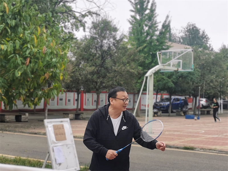开幕式结束后,技术指导王晓友老师为大家耐心讲解了羽毛球赛的基本规则和基本动作,并进行了现场示范。运动员们积极调整身体状态,进行赛前热身。尽管天空中飘着毛毛细雨,但运动员们依旧满腔热情,成为外语楼前最亮丽的一道风景线。