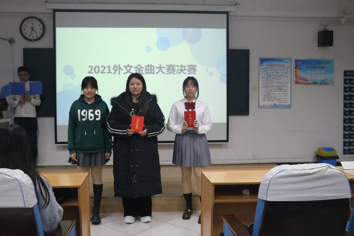 经过紧张激烈的初赛,曹文畅、丁彦心、魏艺鸣等十位同学成功晋级决赛。在本次决赛中,每位参赛选手都发挥出全部实力,给观众带来视听盛宴,在孙凡舒同学《Love story》的悠扬歌声中,比赛正式拉开帷幕。此次比赛共分自由演唱、关键词演唱和组合演唱三个环节。关键词演唱环节中,孙凡舒同学选择love为关键词,通过英国著名乐队披头士的《Hey Jude》诉说温暖、希望和爱,营造了宁静温馨的氛围。魏艺鸣同学带来的英语歌《All》温柔浪漫,展现出不凡的唱功。比赛结束后,经过评委们的认真商讨,魏艺鸣同学取得了本次决赛的一等奖,张瑞萱、任智涵同学获得二等奖,曹文畅等七位同学获得三等奖。
