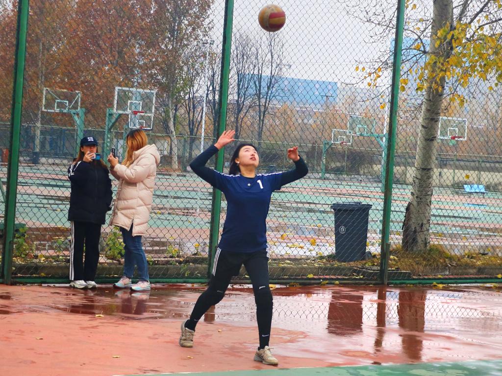 秋阳普照,雨后初霁。11月20日上午,激动人心的“迎新杯”排球联赛如期开展,女排运动员们不畏寒冷,再登赛场,对战物理工程学院女排和统计学院女排。