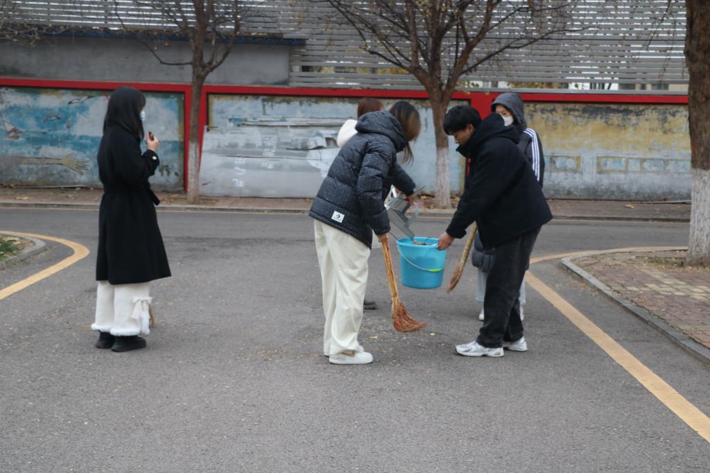 同学们准时到达劳动地点分发好卫生工具,在了解活动安排后,他们前往了不同的区域。同学们先将地面落叶清扫干净,随后弯腰捡起了废纸、废瓶、塑料袋等垃圾,他们身后留下的是一片干净、有序的卫生区域。与此同时,负责倾倒垃圾的同学将垃圾分类,并倒入不同的垃圾箱。本次活动劳动任务比较重、持续时间也比较长,但同学们态度积极、分工明确,全心投入到劳动中,充分发扬了不怕苦、不怕脏的劳动精神。在大家的共同努力下,系楼前的环境更加整洁、干净,大家也体会到了劳动的乐趣。