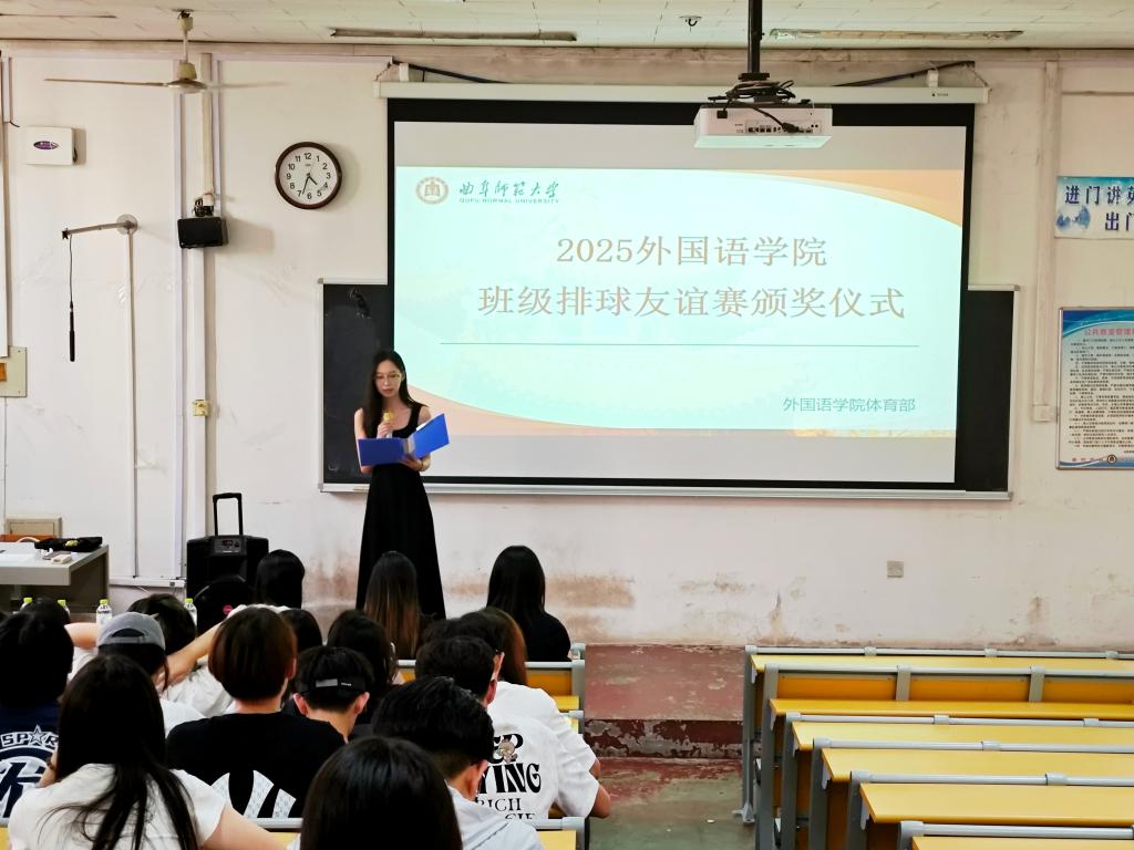 于 6 月 3 日在系楼前举办第十二届班级排球赛决赛,并于 6 月 6 日在系楼 101 教室举行颁奖典礼。学生会副主席唐璇、秘书长孙凌洁、体育部部长刘博音出席本次颁奖典礼。