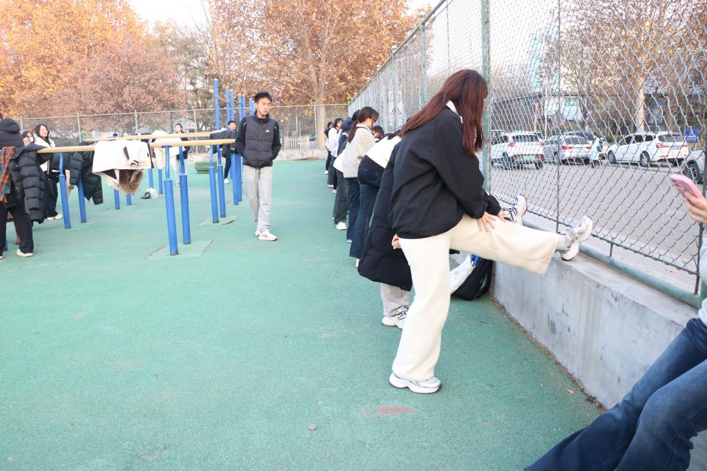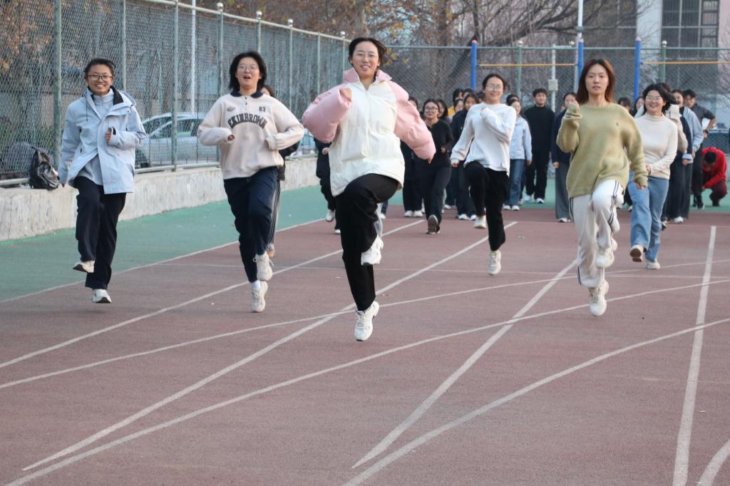 训练场上青春活力四溢,体育部志愿者有序组织长跑热身,同学们队列整齐、步伐铿锵;热身过后,在教练指导下,高抬腿、短跑冲刺等项目轮番开展。老师们走近冬训队伍对冬训学子进行亲切慰问,叮嘱同学们 “天冷记得加件外套”“训练后要及时拉伸”,并鼓励大家在坚持中突破自我。同时,老师们也向教练团队的专业指导表示赞赏与肯定,强调“科学训练、安全第一”,以此确保参训同学以更饱满的状态投入训练,为春季运动会积蓄力量。