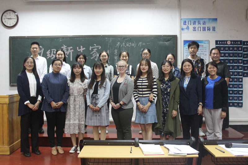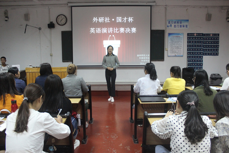 系楼201教室拉开帷幕。英语外教Kelly与王秀卿、刘萍、孔艳艳老师担任本次大赛的评委。