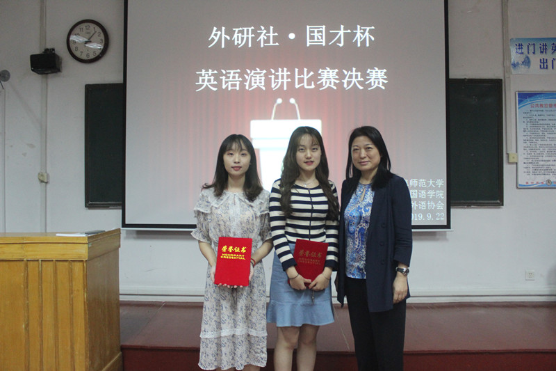 本次决赛分为定题演讲并回答问题和即兴演讲两个环节。在第一轮的定题演讲中, 选手们仍然以 “My big story in 2019” 为主题,讲述自己的故事,相较初赛,大家的语言流利度及自信程度都有了很大的提高,均表现出了不俗的演讲水平。其中,2017级卢嫣然同学凭借巧妙的构思、流利地道的口语和丰富恰当的肢体语言给评委和观众留下了深刻的印象。到了第二轮的即兴演讲环节,面对抽到的陌生题目,选手们依然自信大方,用缜密的逻辑阐释了自己的观点,凭借精彩的表现赢得阵阵掌声。两个环节顺利结束后,外教Kelly和王秀卿老师对选手们的演讲内容、演讲技巧、发音准确度以及临场应变能力等方面做出了全面中肯的点评。最终,卢嫣然和王心怡同学荣获一等奖。