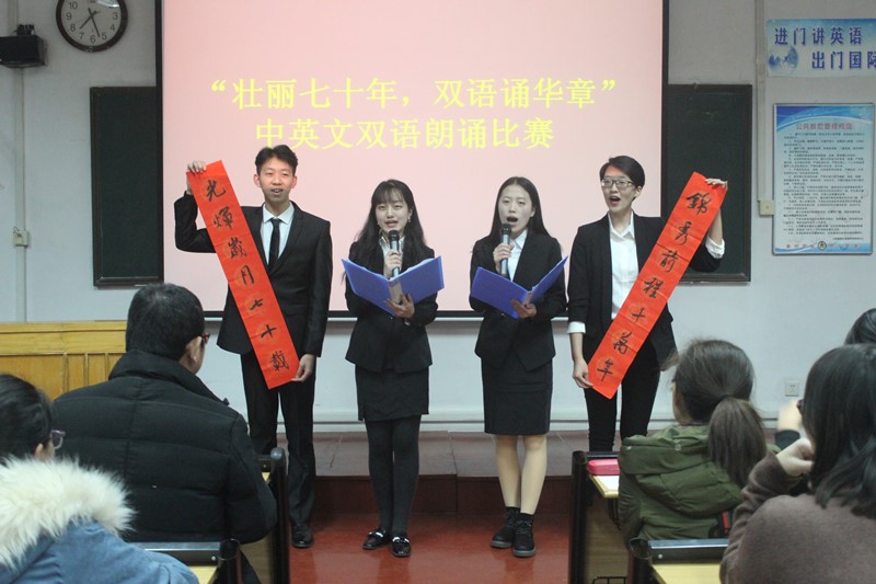 于系楼201教室举办以“壮丽七十年,双语颂华章”为主题的中英文双语朗诵比赛,bet365