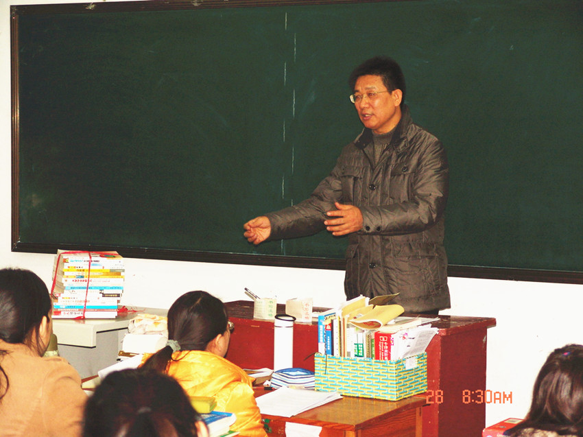 2012级英语师范1班,并与同学们座谈交流。