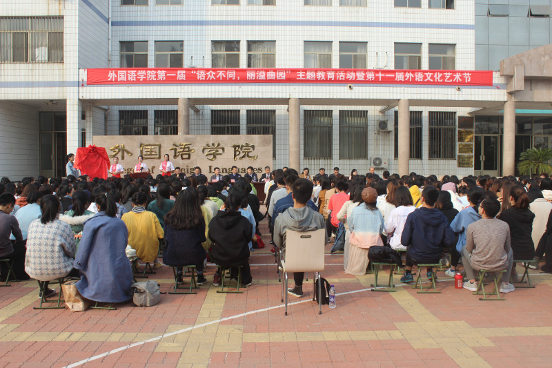 在外语楼前举行第一届“语众不同,丽溢曲园”主题教育活动暨第十一届外语文化艺术节启动仪式。bet365