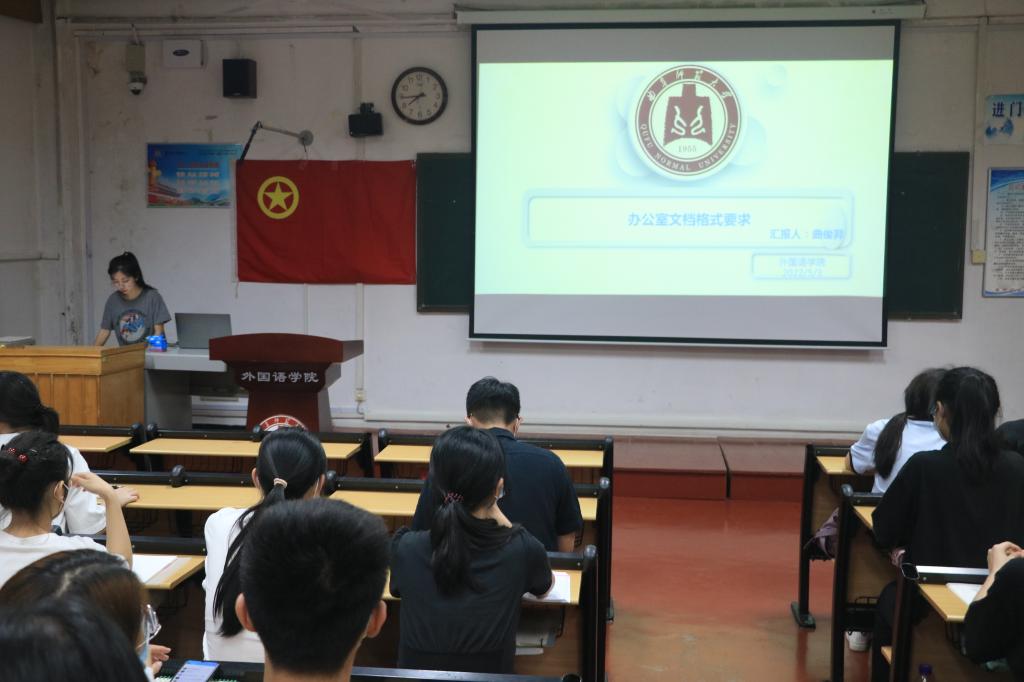 本次活动主要对学生干部进行公文写作方面的培训。活动伊始,宣传部副部长董玥从格式与内容两方面系统地讲解了新闻撰写、策划案撰写的公文写作基础。随后,远方编辑部副部长刘乐嘉讲解了新闻撰写中部分词语的用法,强调了公文写作准确精简、严肃认真的重要性。之后办公室副部长殷玉洁和曲俊羿分别讲解了报销流程和文档格式要求。最后,秘书处副部长李雅楠讲解了日常活动加分表的注意事项,这有利于提高部门之间的运作效率。现场氛围融洽,学生干部认真聆听,专心记录,纷纷表示受益匪浅。