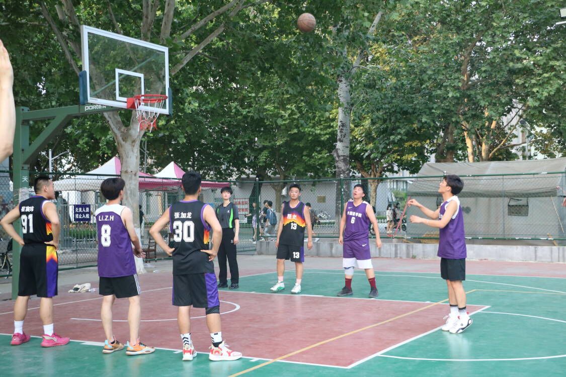 哨声响,赛事始。双方队员火力全开,突破、上篮、快攻、抢断,动作连贯如行云流水。狭路相逢勇者胜,双方很快进入了激烈的比拼。一个篮球,一身球衣,一路热血沸腾,同学们积极进攻,努力防守,每一个精彩瞬间都引来现场声声欢呼。炎热的球场上,男篮前锋李子涵展开启了一系列快攻和精准的投篮,内线冲杀给予了队友们极大的鼓舞。男篮控卫潘帅的三分远投让队友欢呼,让观众们沸腾!信念、耐力、精准配合与一腔热血在球场中凝聚;力量、拼搏、奋斗与不坚强在篮筐和记分牌上一一展现。默契的配合,从不需要过多的言语,一个眼神交流,一个手势示意,漂亮的转身,快速的起跳,配合一个完美的投掷,呐喊与尖叫声在赛场上瞬间响起。