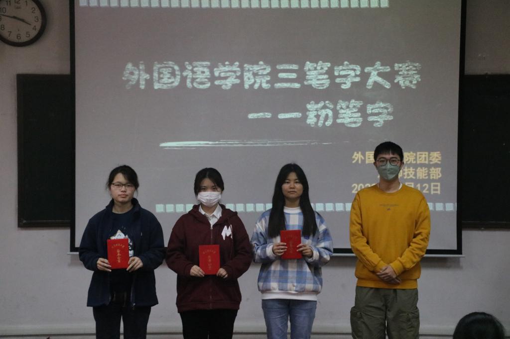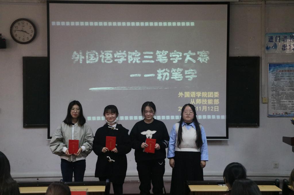 本次比赛分为钢笔字、毛笔字、粉笔字三个专项,师范生和非师范生两个组别,面向大二、大三年级全体同学展开。在比赛现场,选手们屏气凝神,用笔有力,发力刚劲。他们的作品笔致和谐统一,墨韵巧妙合理,结体虚实均衡。其内容不仅体现了字体艺术,还包括丰富的文学艺术。最终,师范组侯怡睿、邱容颜,非师范组柴予澍、呼佳雨同学表现出色,字体方正,行笔迅捷,荣获一等奖。
