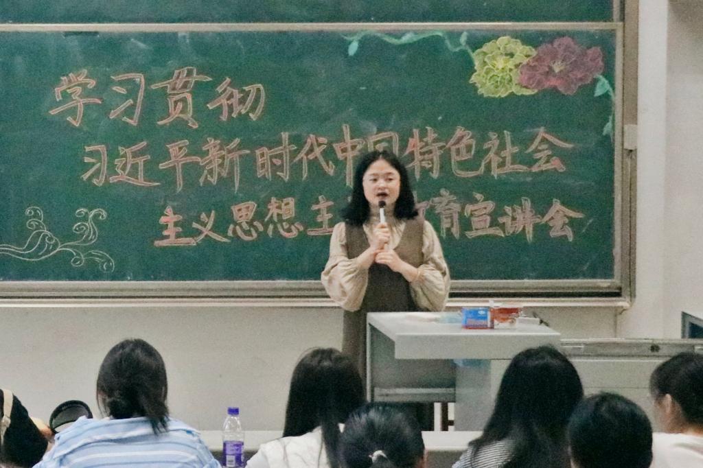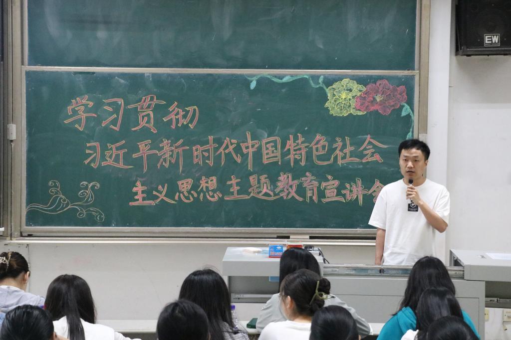 会上,宣讲团从优秀传统文化“两创”和“两个确立”科教融合两个专题进行宣讲。首先由宣讲团成员边爽从“坚持和发展中国特色社会主义政治宣言和行动纲领”的主题出发,围绕党的二十大主题、主要成就等方面对党的二十大精神进行了具体解读,积极引导同学们深刻领悟“两个确立”的决定性意义。其次由宣讲团成员唐金武围绕“推进文化自信自强,铸就社会主义文化新辉煌”主题,从新征程中意识形态工作的重大意义和面临的新挑战出发增强同学们的文化自信,鼓励同学们铸就社会主义文化新辉煌。最后,宣讲团成员田昭霖从“万山磅礴看主峰,党建引领事业兴”主题进行了细致的讲解,具体阐述了党的思想建设、精神建设、制度建设、作风建设、组织建设,加深了同学们对党的认识。