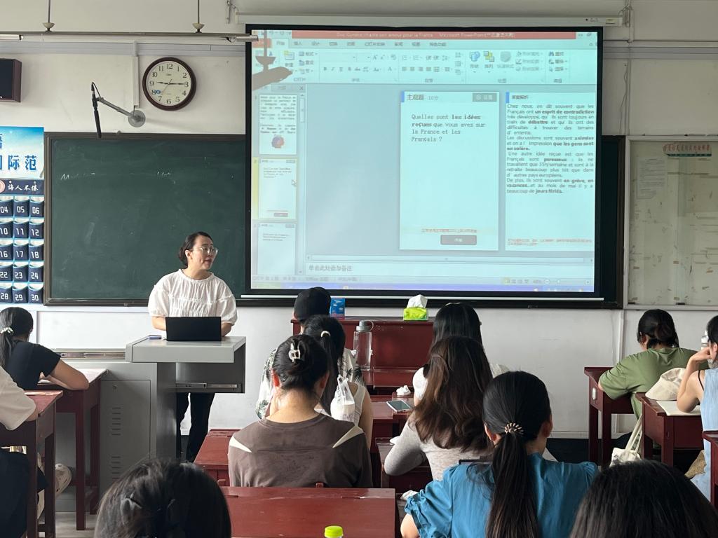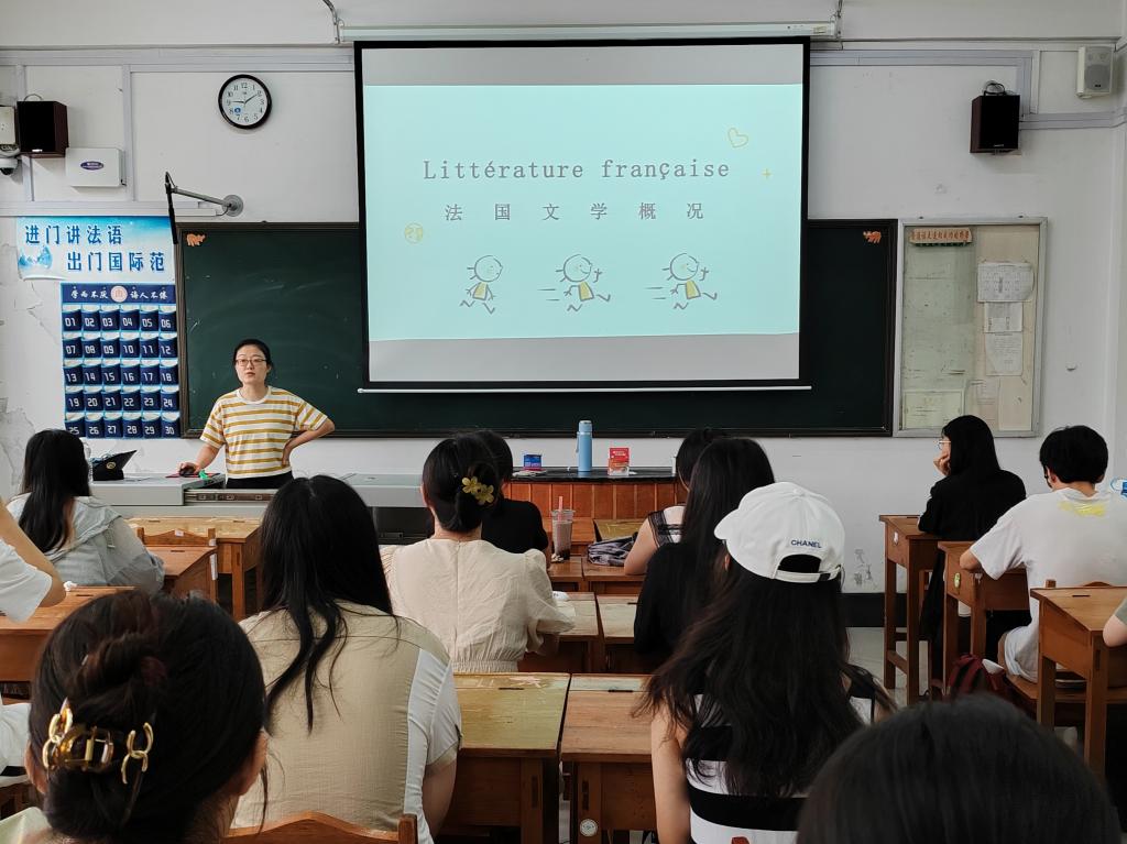 在大学生创新创业项目解读中,张立昌老师以幽默的话语引入大学生创业话题,就如何选题、申报流程、申报内容、项目经费等问题为同学们进行了细致的讲解。在英语专业竞赛交流会上,2020级刘晨歌同学介绍了“外研社·国才杯”短视频大赛赛前和赛中的流程和相关注意事项,分享比赛经验,随后“高教社杯”一等奖获得者2022级刘雨桐同学介绍了他们的团队和创作过程。在俄语专业课程专题1(翻译)讲座中,关月月老师首先对翻译行业、翻译市场进行介绍,随后详细地向同学们讲授了翻译方法及翻译流程,加深了同学们对翻译的理解。在法语专业“欧洲人眼中的法国人”讲座中,鲍海波老师讲述了欧洲人对法国人的刻板印象以及法国人的标志,使同学们更加深入的了解了法国。在法语专业“漫谈法国文学”讲座中,李静老师向同学们介绍了19世纪法国作家及其文学作品、文学形式、法国文学奖项,帮助同学们更好地认识了法国文学。