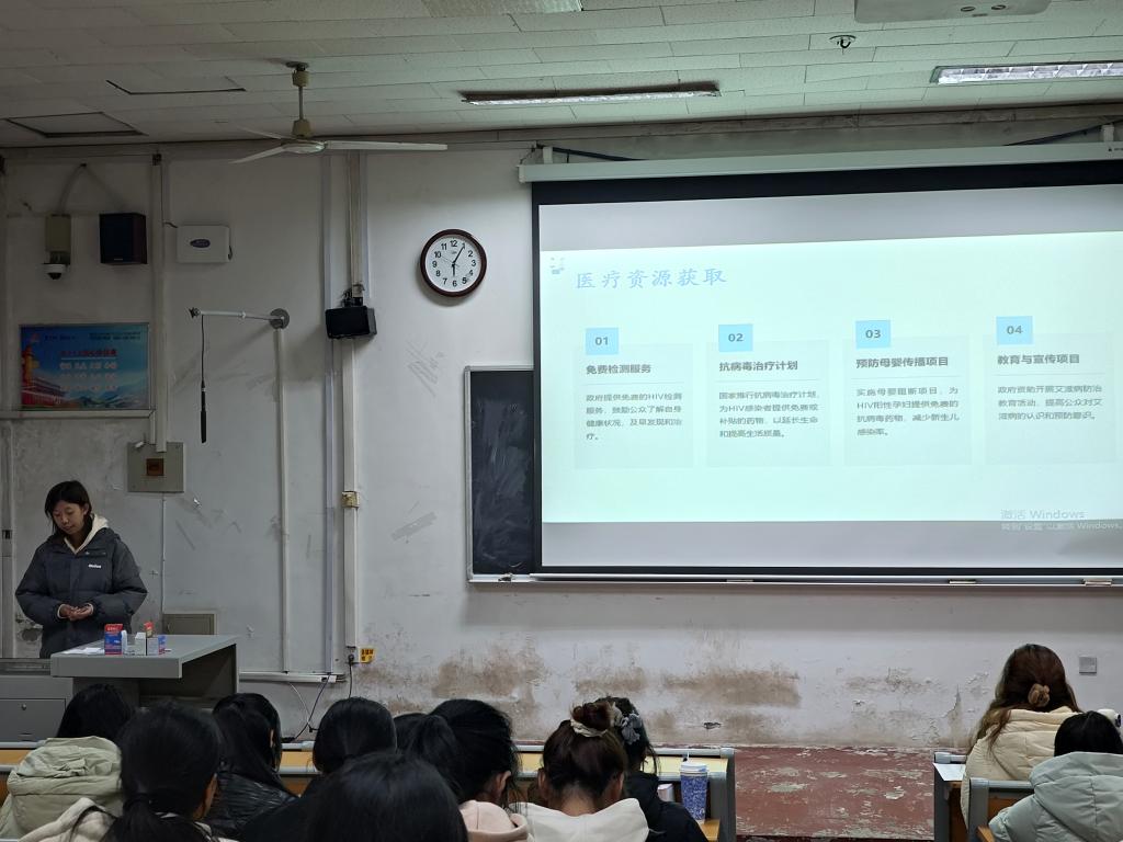 为加强艾滋病防治宣传教育,鼓励师生广泛参与艾滋病防控工作,共同构建起抵御艾滋病的坚固城墙,126日,bet365 卫生健康部于系楼101举办艾滋病防治宣传讲座,卫生健康部部长刘梦妤进行宣讲。