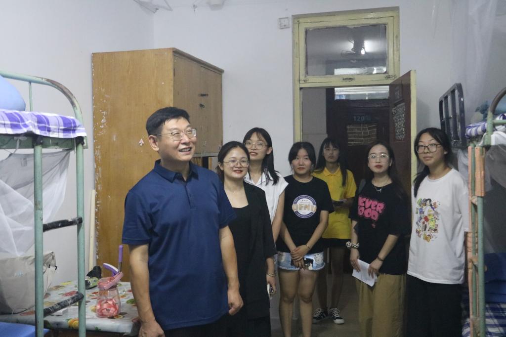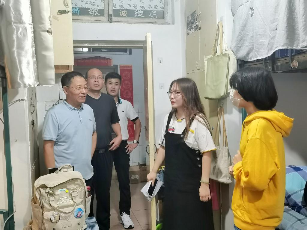 党委书记费沂涛,院长秦洪武,党委副书记王作茂,副院长王洪明、邢加新,全体辅导员及团委学生会干部代表走访学生宿舍,慰问2021级新生。