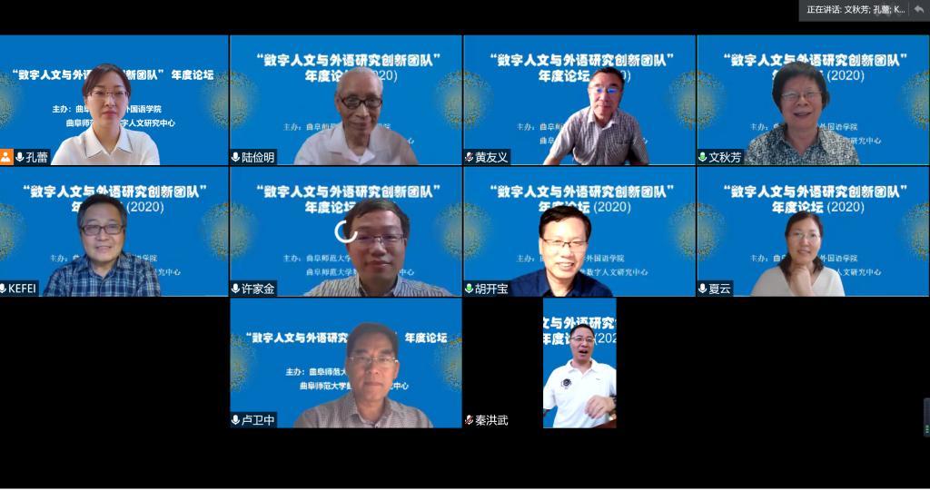 数字人文研究中心联合主办的“数字人文与外语研究创新团队”年度论坛在线上举行,党委常委、副校长夏云杰出席开幕式并致辞。论坛由学院院长秦洪武教授主持。国内上百所高校和研究机构的300名专家学者参加本次论坛。