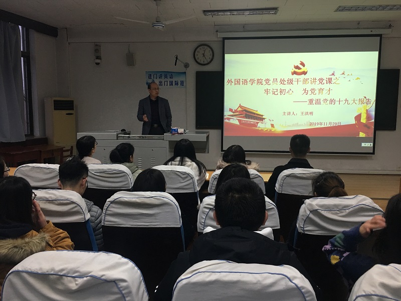 党委委员、副院长王洪明同志在学院301室为研究生党员讲党课,学生党支部全体研究生党员参加。