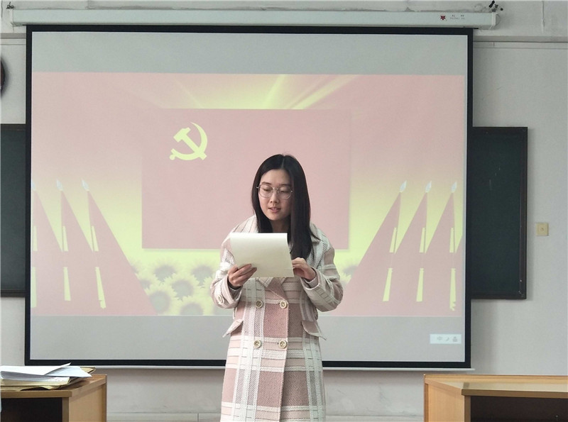 最后,学生党支部书记王旖旎做总结性发言。王旖旎老师在对转正的同志表示祝贺和给予肯定的同时,还强调各位同志在以后的学习生活中要积极向党组织靠拢,更加刻苦,更加务实,更加自律,在广大学生中竖起一面旗帜。
