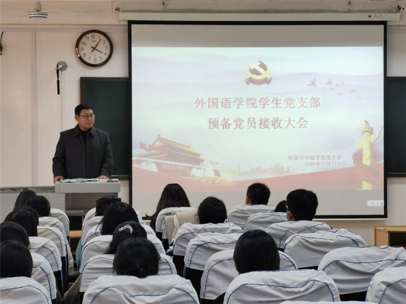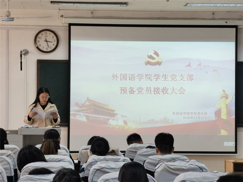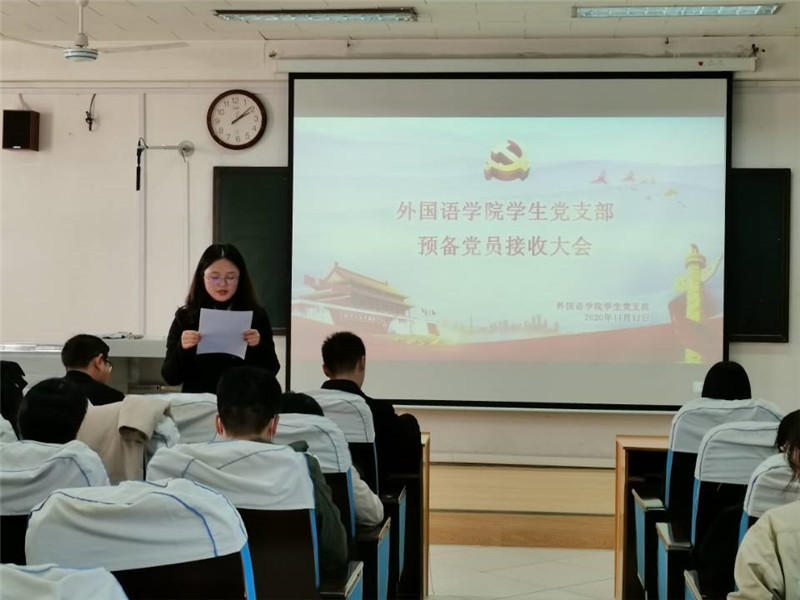 本次严格按照党组织接收预备党员各项程序进行。大会伊始,学生党支部书记张晓向大会报告参会人员到会情况,介绍了会议流程和具体要求。随后,18位发展对象逐一汇报对党的认识、入党动机、本人履历、家庭成员和主要社会关系情况,以及需要向党组织说明的其他问题。入党介绍人逐一汇报发展对象刘仪霞等18名同志的现实表现和基本情况,并对其能否入党表明意见。之后,党支部副书记王仁杰同志代表支部委员会报告对发展对象的政审情况,并传达上级党委的预审意见。经过与会党员充分讨论和支部大会正式党员的无记名投票表决,一致同意接收刘仪霞等18位同志为中共预备党员。新党员逐一上台表态,承诺自己日后定争做合格党员。