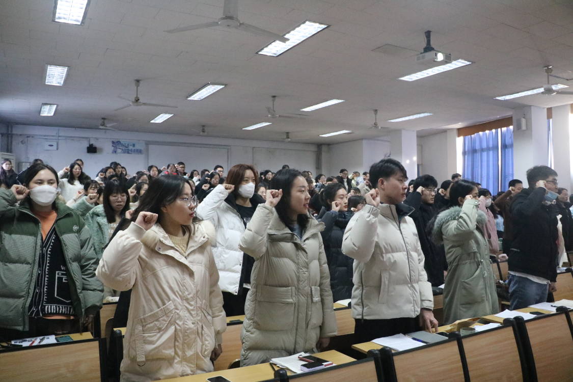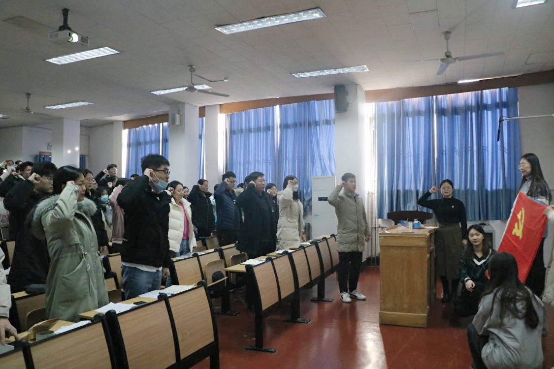 学生党支部举办新党员入党宣誓仪式。会议由学生党支部书记张晓主持,学院党委副书记王作茂莅临指导。学生党支部全体党员、入党积极分子代表参加了本次仪式。