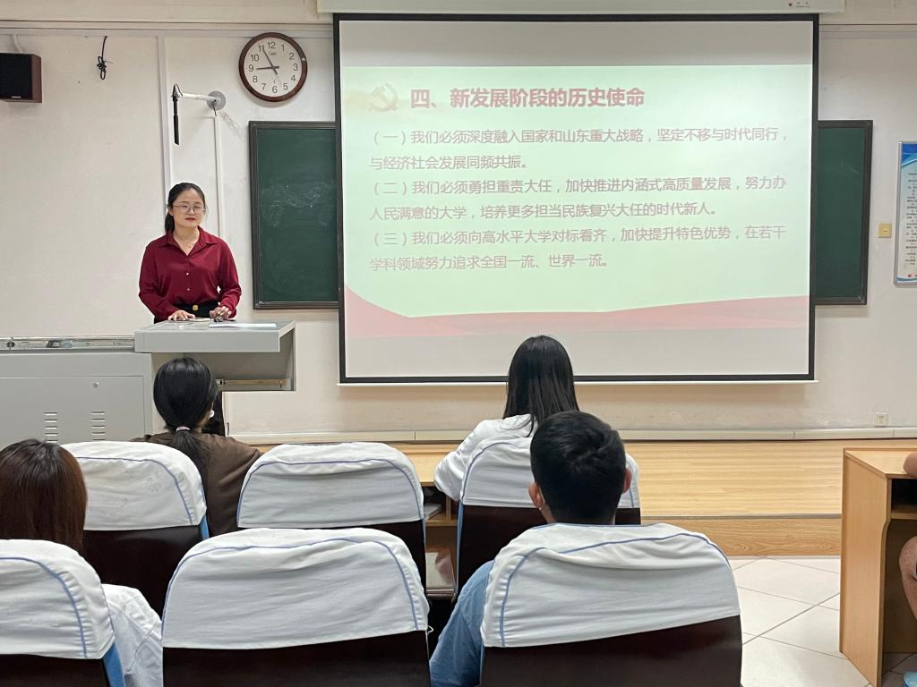 本次主题团课有利于同学们明确自身责任,坚定奋斗目标,加深对于中共bet365 第九次党代会精神的认识。希望同学们在今后的学习与生活中能够严格要求自我,不忘初心,牢记使命,踔厉奋发,为学院的发展贡献自己的青春力量,为建设世界知名的高水平孔子家乡大学而不懈奋斗,以实际行动迎接党的二十大胜利召开。